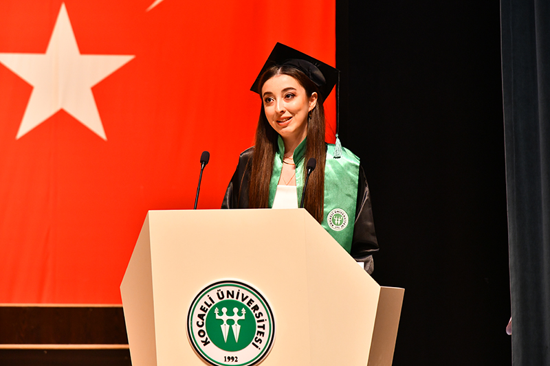Saygı duruşunda bulunulması ve İstiklal Marşı’nın okunmasıyla başlayan mezuniyet töreninin açılış konuşmalarında, öğrenciler adına konuşan Öykü Beyhan Yılmaz, duygu ve düşüncelerini aktarırken, Dekan Prof. Dr. Emre Özel ise mezun öğrencilere hayat boyu başarılar diledi.