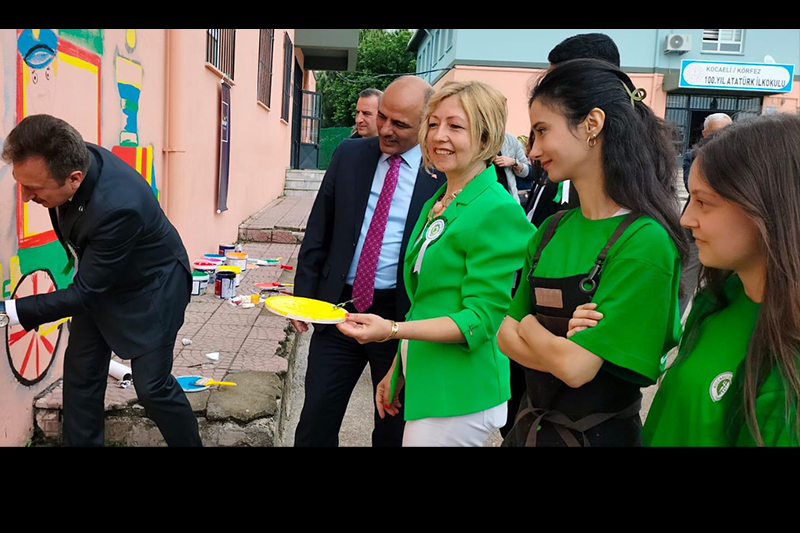 Programda ayrıca KOÜ-Marshall arasında imzalanan Sıfır Atık Protokolü kapsamında Doç. Dr. Nermin Demirkol yürütücülüğünde duvar boyama etkinliği yapıldı. KOÜ Sıfır Atık Kulübü öğrencileri, Körfez Kaymakamı Uğur Kalkar, Körfez Belediye Başkanı Şener Söğüt, Körfez İlçe Milli Eğitim Müdürü Sergülen Kurt, Körfez İlçe Emniyet Müdürü Ahmet Zihni Manap, Körfez İlçe Sağlık Müdürü Dr. Oğuz Kösa ve okul öğrencileri ile okul duvarını renklendirdi.