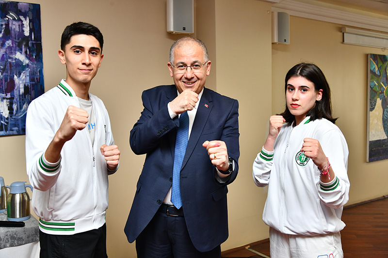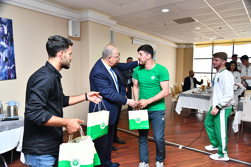 Karate, Judo, Kickboks, Wushu, Basketbol ve Voleybol gibi branşlarda başarı gösteren sporcularımızı tek tek tebrik eden Rektörümüz Prof. Dr. Nuh Zafer Cantürk, üniversitemizin farklı fakültelerinden, farklı branşlarda başarılı sporcularımızın olmasının mutluluk verici olduğunu belirtti.