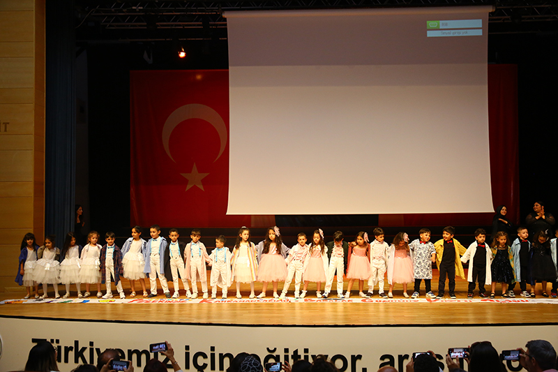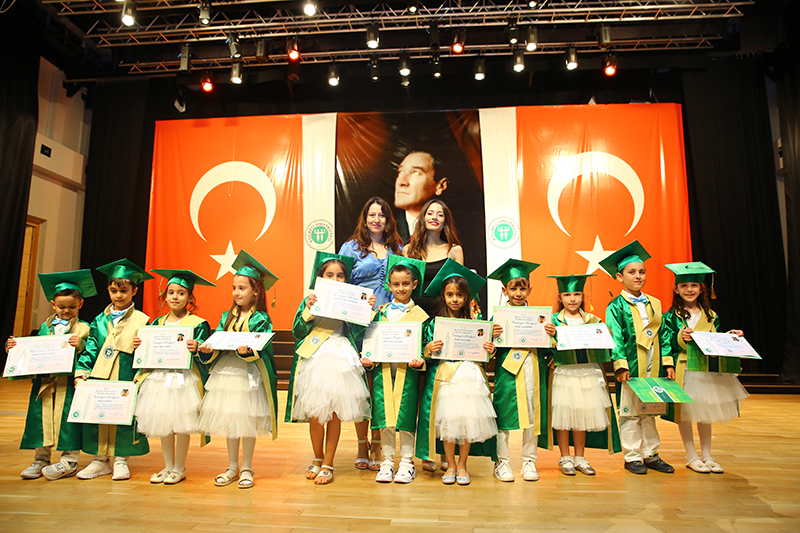 Ailenizle başlayan serüven bizimle devam etti. Ve şu anda bu senenin mezuniyetini kutluyoruz. Mutluyuz, gururluyuz. Mustafa Kemal Atatürk’ün yolundan adil, dürüst, ileri görüşlü birey olmanız dileğiyle, gelecekte güzel günler görmeniz dileğiyle başarılarınız daim olsun diyerek sahneyi miniklerin dans gösterisine bıraktı.