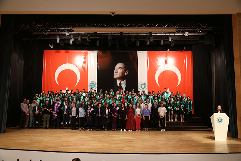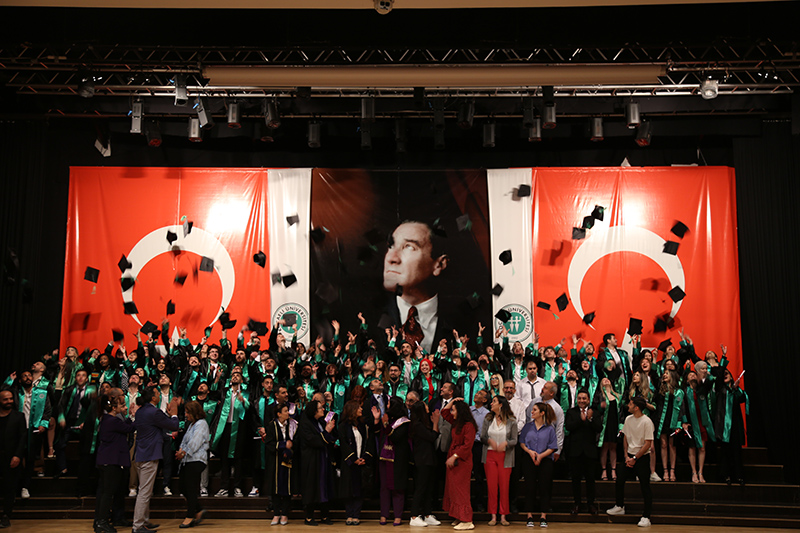Mezun öğrenciler anı belgelerini öğretim elemanlarından alırken tören, öğrencilerin birlikte kep atması ile sona erdi.