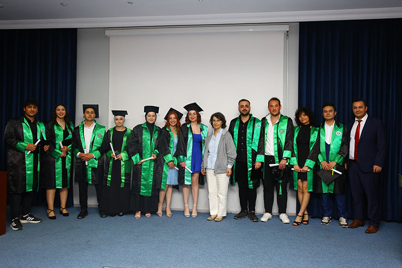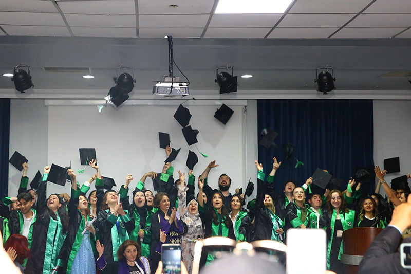 Mezun öğrenciler anı belgelerini öğretim elemanlarından alırken tören, öğrencilerin birlikte kep atması ile sona erdi.