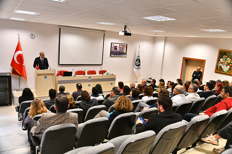 Eğitim Fakültesi konferans salonunda düzenlenen Eğitim Fakültesi Akademik Kuruluna Rektörümüz Prof. Dr. Nuh Zafer Cantürk, Rektör Yardımcısı Prof. Dr. Mehmet Yıldırım ve Prof. Dr. Elif Öğüt, Rektör Danışmanı Prof. Dr. Levent Atalı, Dekan Prof. Dr. Elif Çelebi Öncü, Genel Sekreter Doç. Dr. Mustafa Eren, bölüm başkanları ile öğretim üyeleri katılım gösterdi.