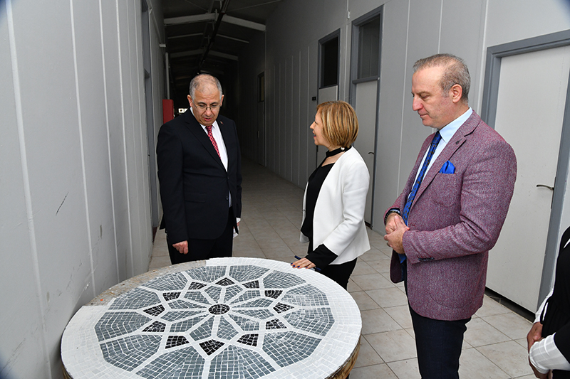 Rektörümüz Prof. Dr. Nuh Zafer Cantürk ayrıca, Şehit Astsubay Ömer Halisdemir Yerleşkesi’ndeki, Güzel Sanatlar Fakültesi Seramik Bölümü Öğretim Üyesi Doç. Dr. Nermin Demirkol'un atölyesini de gezerek bilgi aldı.