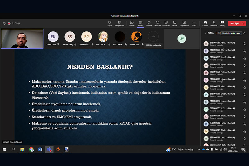 Kocaeli Üniversitesi Hereke Asım Kocabıyık MYO Elektronik ve Otomasyon Bölümü “Donanım Tasarımı ve Gömülü Sistemler” konulu online panel düzenledi. 28.03.2023 tarihinde gerçekleşen panele Armoli Teknoloji A.Ş. Uzman Arge Proje Sorumlusu M. Fatih GÜNEY panelist olarak katılırken, panel moderatörlüğünü Mekatronik Program Koordinatörü Öğr. Gör. Uğur Yücel yaptı.