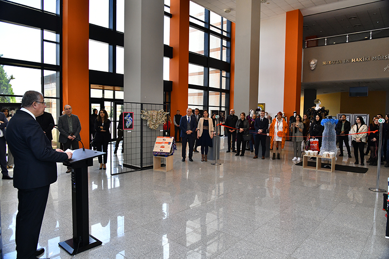 Dünyayı kurtarma adına yapılan en anlamlı işbirliğinin bu olduğuna vurgu yapan Rektörümüz Prof. Dr. Nuh Zafer Cantürk ise, “İsrafı önlemek, kaynakları verimli kullanmak, atık miktarını azaltmak ve atıkları geri kazanmak bugünün dünyasında hiç olmadığı kadar büyük önem taşımaktadır. Sıfır Atık yaklaşımı bu hususta önemli bir yere sahiptir. Tüm bu sebeplerle çok önemli bir farkındalık projesi için bugün bir araya toplanmış bulunuyoruz. Atık malzemelerin kıymetli sanatçılarımızın elinden geçerek nasıl topluma yararlı eserlere dönüştürüldüğünü görüyoruz. Unutmamız gerekir ki yeryüzü bize atalarımızdan miras kalmadı, çocuklarımızdan ödünç aldık. Çocuklarımıza daha verimli kaynaklar ve güzel bir dünya bırakabilmek umuduyla, bu serginin hazırlanmasında emeği geçen herkese şükranlarımı sunuyorum.” dedi.