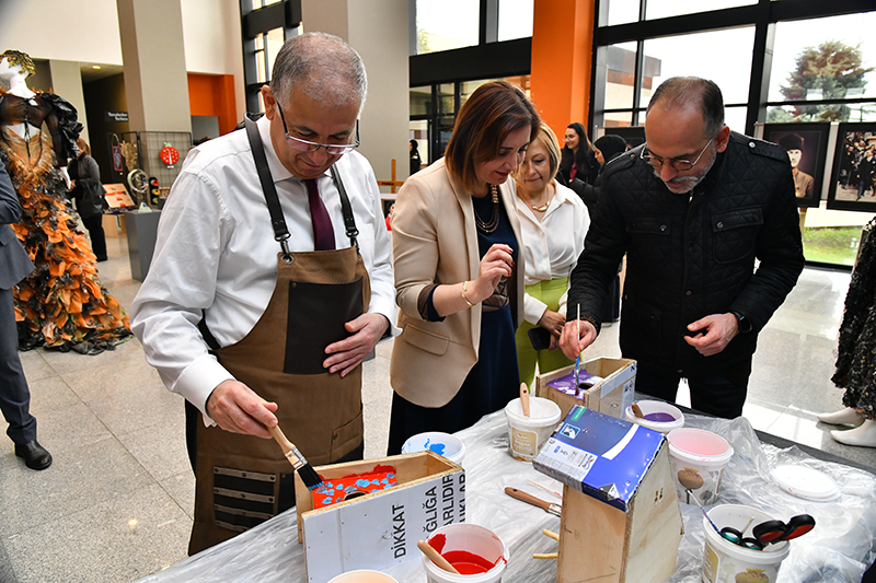 Yapılan açılış konuşmaları ardından “Sıfır Atık Uygulamalar” sergisinin açılışı gerçekleştirildi. Sergiyi gezen Rektörümüz Prof. Dr. Nuh Zafer Cantürk, sergideki eserler hakkında bilgi alırken, Marshall katkıları ve renkleri ile atıklardan oluşturulan kostüm ve yuvaları da boyadı. Projeye destek sunan Stilist Elif Kılıç, Proje Yürütücüsü Doç. Dr. Nermin Demirkol ve Marshall Marka Müdürü Ali Rıza Erbayrak’a Rektörümüz Prof. Dr. Nuh Zafer Cantürk tarafından plaket takdim edilen etkinlikte projede yer alan öğrencilere de teşekkür belgesi verilmesiyle etkinlik sona erdi.