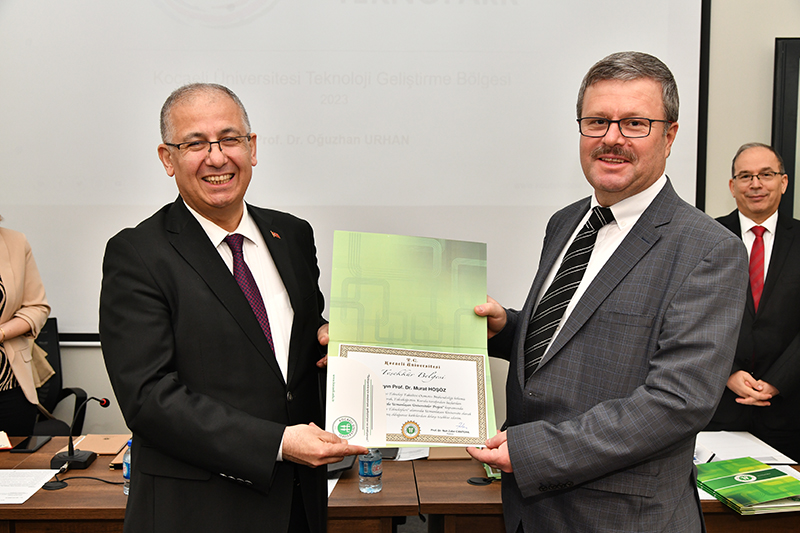 Kocaeli Üniversitesi Senato ve Yönetim Kurulu toplantıları olağan gündem ile KOÜ TEKNOPARK’ta toplandı. Senato toplantısı öncesi; Yükseköğretim Kurulu tarafından başlatılan “Öncelikli Alanlarda Uzmanlaşan Üniversiteler Projesi” kapsamında “Motor Teknolojileri” alanında Uzmanlaşan Üniversite olarak seçilmemize vesile olan Teknoloji Fakültesi Otomotiv Mühendisliği öğretim üyelerine teşekkür belgesi verildi. Teşekkür belgelerini Rektörümüz Prof. Dr. Nuh Zafer Cantürk takdim etti. Kocaeli Üniversitesi’nin araştırma üniversitesi olma yolunda önemli bir adım olduğuna dikkat çeken Rektörümüz Prof. Dr. Nuh Zafer Cantürk, daha çok çalışmamız gerektiğine vurgu yaptı. Toplantıda ayrıca YÖK tarafından üniversitemize verilen ‘Uzmanlaşan Üniversite’ belgesinin tasvirinin yer aldığı pasta birlikte kesildi.