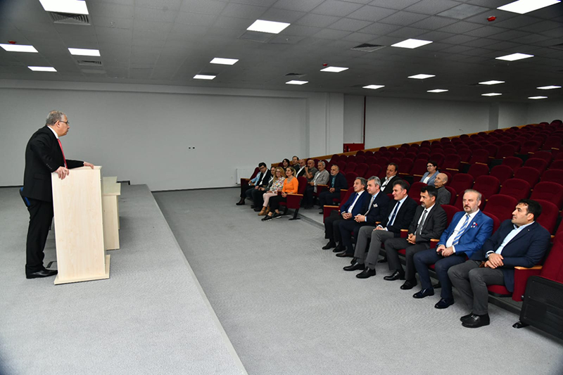 Körfez Yerleşkesinde bulunan Ali Rıza Veziroğlu MYO'da incelemelerde bulunan Rektörümüz Prof. Dr. Nuh Zafer Cantürk, MYO öğretim üyeleriyle toplantıda bir araya geldi. Toplantıda konuşan ve meslek yüksekokullarının önemine değinen Rektörümüz Prof. Dr. Nuh Zafer Cantürk, 'Kocaeli Üniversitesi Meslek Yüksekokulları endüstriyel kalkınma ve yenilik konularında öncü bir kurum olarak bölge ekonomisine büyük katkı sağlamaktadır. Meslek yüksekokulları, üniversitemizdeki eğitim-öğretim faaliyetlerinin önemli bir parçasıdır. Meslek yüksekokulları, öğrencilerimizin iş dünyasına hazırlanmalarında önemli bir role sahiptir. Sizler, öğrencilerimizin iş hayatındaki başarıları için büyük bir sorumluluk altındasınız." dedi.