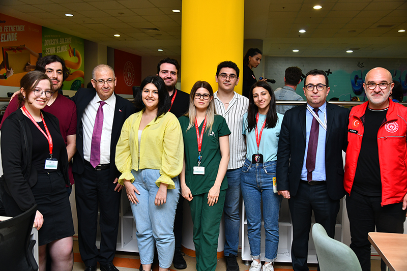 Kocaeli Üniversitesi öğrencileri yanı sıra akademik ve idari personelin eğitsel, kültürel, gönüllülük ve sportif faaliyetlerinin geliştirilmesi; bağımlılıkla mücadele, sosyal sorumluluk ve gönüllülük algılarının güçlendirilmesinin yanı sıra gençlerin yükseköğrenimleri sürecinde almış oldukları eğitimle birlikte kişisel kapasite gelişimlerine katkı sağlanması ve desteklenmesi amacıyla kurulan ‘Genç Ofis’te incelemelerde bulunan Rektörümüz Prof. Dr. Nuh Zafer Cantürk, gençlerle sohbet etti.