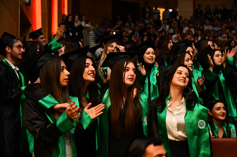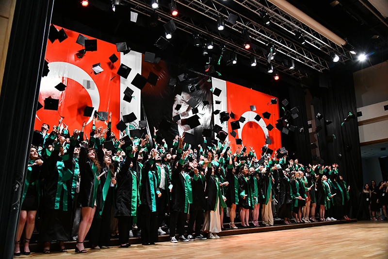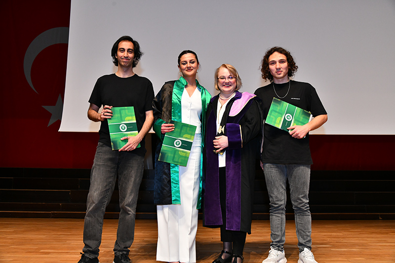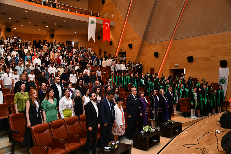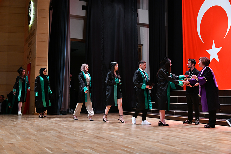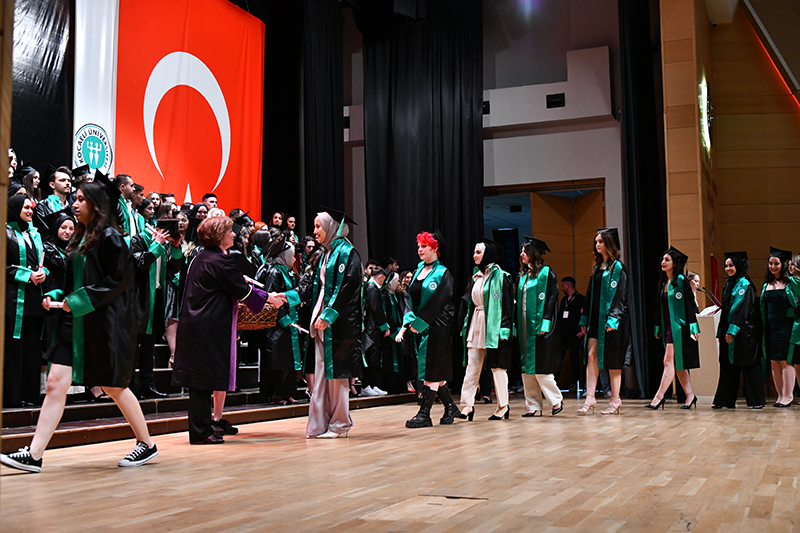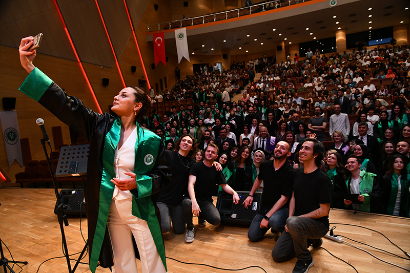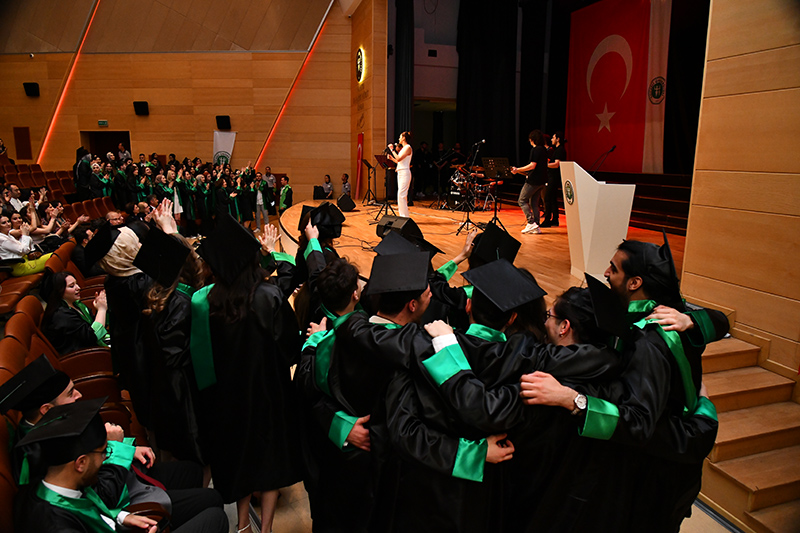 Mimarlık ve Tasarım Fakültesi öğrencilerinden oluşan grubun söylediği konser ile eğlenen mezunlara anı belgelerini Dekan Prof. Dr. Oya Şenyurt’tan aldı. Tören, öğrencilerin kep atması ile sona erdi.