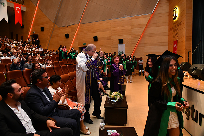 Rektörümüz Prof. Dr. Nuh Zafer Cantürk ise, “Sizler, geleceği inşa edecek olan mimarlar ve iç mimarlar olarak büyük bir sorumluluğu omuzlarınızda taşıyacaksınız. Gelecekteki kariyerinizde başarı elde etmek için azimle çalışmanız gerekecek. İşinizde mükemmeli arayacak, yaratıcılığınızı sınırları zorlayarak kullanacak ve insanların yaşam kalitesini iyileştirecek çözümler üreteceksiniz. İnşa ettiğiniz yapılar ve tasarımlar, insanların yaşamlarına değer katacak ve toplumun gelişimine katkı sağlayacaktır. Sizler artık mimar ve tasarımcılarsınız. Hepinizi tebrik ediyor, başarılarınızın devamını diliyorum. Atatürk'ün sözlerinde ifade ettiği gibi, cesaretiniz, terbiyeniz ve irfanınızla insanlık meziyetini temsil edeceğinize inanıyorum. Başarılarınızın sürmesini ve hayallerinizi gerçekleştirmenizi dilerim.” dedi.
