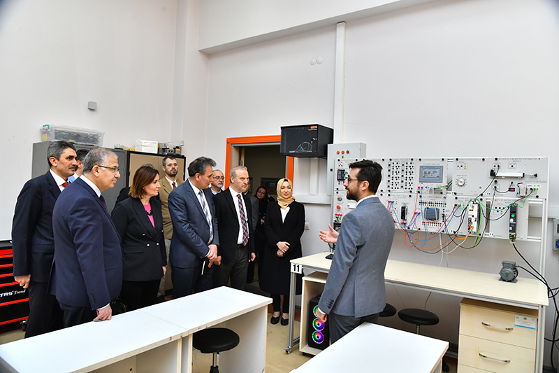 Yapılan toplantı ardından Uzunçiftlik Nuh Çimento MYO'daki laboratuvarları gezen Rektörümüz Prof. Dr. Nuh Zafer Cantürk, laboratuvarlarda yürütülen çalışmalar ile ilgili öğretim üyelerinden bilgi aldı.