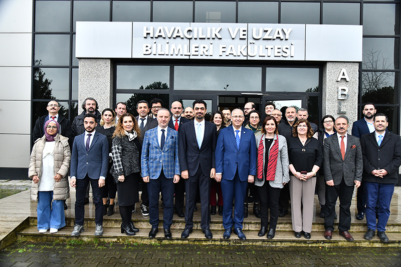 Ziyarette Rektörümüz Prof. Dr. Nuh Zafer Cantürk'e, Rektör Yardımcısı Prof. Dr. Elif Öğüt, Genel Sekreter Doç. Dr. Mustafa Eren ve Rektör Danışmanı Prof. Dr. Levent Atalı eşlik etti. Havacılık ve Uzay Bilimleri Fakültesi Dekanı Prof. Dr. Oğuzhan Urhan, fakültenin güncel durumu ile ilgili bilgilendirmede bulundu.