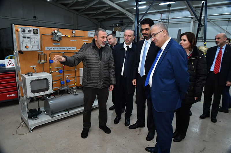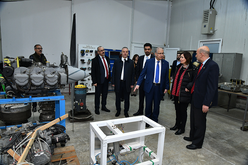 Prof. Dr. Nuh Zafer Cantürk’ün konuşmasının ardından, Havacılık ve Uzay Bilimleri Fakültesi atölye ve laboratuvarlarını gezip bilgi aldı.