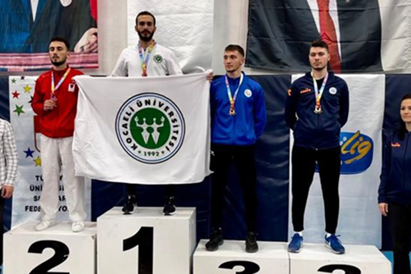 6-8 Nisan 2023 tarihinde Ankara’da Hacı Bayram Veli Üniversitesinin ev sahipliğinde gerçekleştirilen ÜNİLİG Karate Türkiye Şampiyonası sona erdi. Kocaeli Üniversitesi olarak; Spor Bilimleri fakültesi Arş. Gör. Ayşegül Funda Alp antrenörlüğünde üç sporcuyla katılım sağlanan şampiyonadan bir altın bir bronz madalya kazanarak döndü. Kumite branşında, erkekler 75 kg sıkletinde Enes Bulut Türkiye şampiyonu olurken, Mert Halıcı 60 kg.’da Türkiye 3.sü oldu.