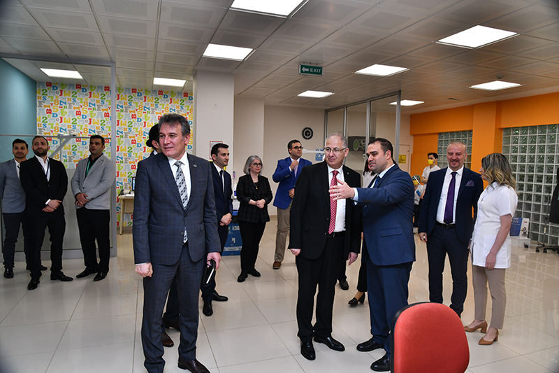 Rektör Yardımcısı Prof. Dr. Mehmet Yıldırım ile Genel Sekreter Doç. Dr. Mustafa Eren'in eşlik ettiği Rektörümüz Prof. Dr. Nuh Zafer Cantürk, Diş Hekimliği Fakültesi'ni gezerek Dekan Prof. Dr. Emre Özel'den bilgi aldı.