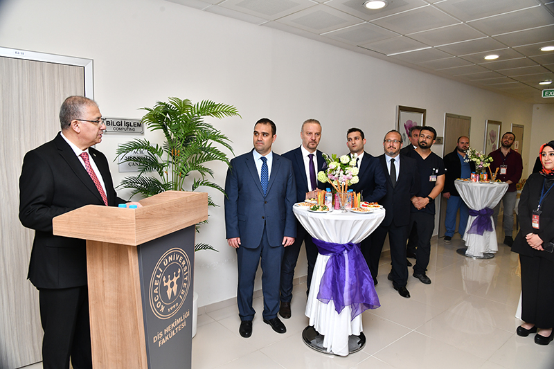 Diş Hekimliği Fakültesi'nde yaptığı incelemeler sonrası öğretim üyeleri ile bir araya gelen Rektörümüz Prof. Dr. Nuh Zafer Cantürk, burada bulunmaktan mutluluk duyduğunu ifade etti. Rektörümüz Prof. Dr. Nuh Zafer Cantürk, 'Kocaeli Üniversitesi Diş Hekimliği Fakültesi, diş hekimliği eğitimi ve araştırması alanında öncü bir fakültedir. Diş hekimliği fakültemiz, özellikle son yıllarda, birçok başarılı araştırma projeleri gerçekleştirmiş ve diş sağlığı alanındaki gelişmelerde önemli bir rol oynamıştır.
