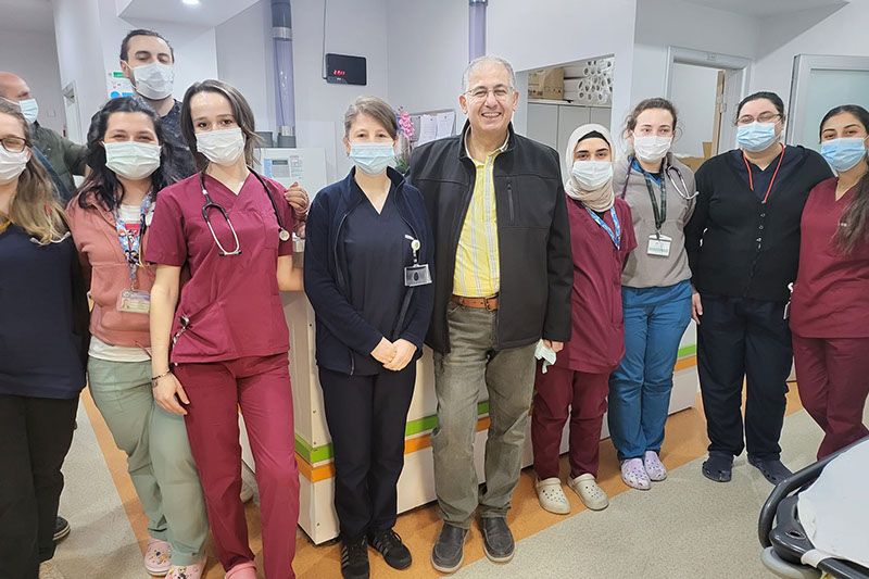 Kocaeli Üniversitesi Hastanesi'nde Acil, Genel Cerrah, Çocuk Acil ile Kadın Doğum bölümlerinde görevli çalışanlar ile tedavi amaçlı yatan hastalar ile sohbet eden ve yeni yıllarını kutlayan Rektörümüz Prof. Dr. Nuh Zafer Cantürk, "Cumhuriyetimizin 100. yılını kutlayacağımız 2023 yılının başta aziz milletimiz ve ülkemiz olmak üzere dünyamıza ve tüm insanlığa barış, sağlık, huzur ve mutluluk getirmesini temenni ederim." dedi.