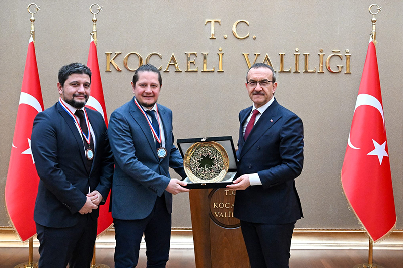 Ekip yurda dönüşlerinde Sayın Kocaeli Valisi Seddar Yavuz’a ziyarette bulunarak kazanmış oldukları madalyalarını takdim ettiler.