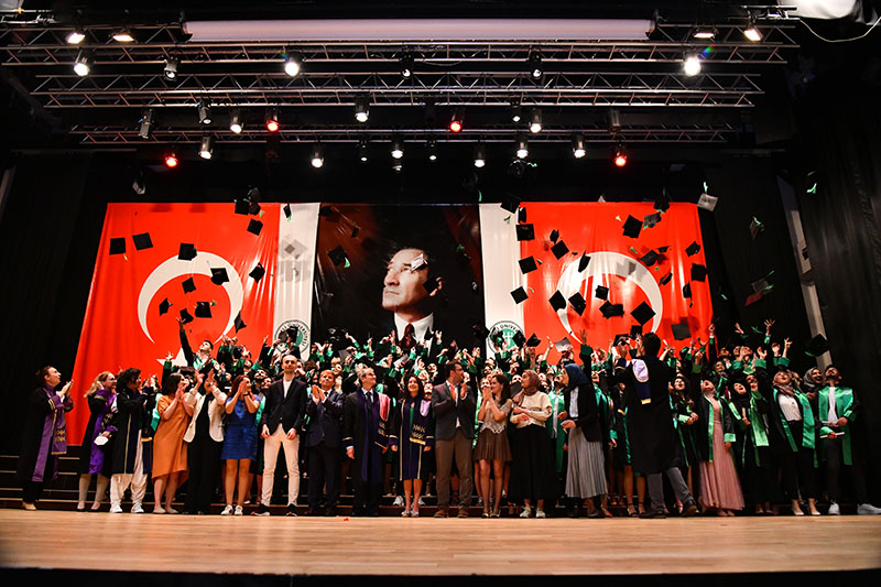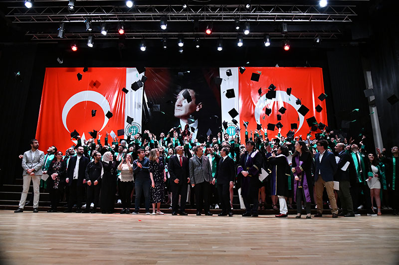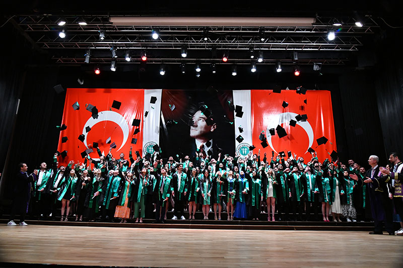 Mezun öğrencileri ve ailelerini kutlayan Rektörümüz Prof. Dr. Nuh Zafer Cantürk ise, “Bu mezuniyet töreni, yeni bir başlangıcın habercisidir. Artık önünüzde geniş bir dünya ve sınırsız fırsatlar var. Ancak, unutmayın ki büyük fırsatlar büyük sorumluluklarla gelir. Ülkemizin ve dünyanın karşı karşıya olduğu sorunları çözmek için sizlerin liderlik yeteneklerini ortaya koymanız gerekecek. İster siyasette ister sivil toplumda, ister iş dünyasında, ister uluslararası platformlarda olsun, sizlerin duruşunuz ve katkınız büyük önem taşıyacaktır. Sevgili mezunlar, sizlerle gurur duyuyoruz ve inanıyoruz ki gelecekte çok büyük başarılara imza atacaksınız.” dedi.