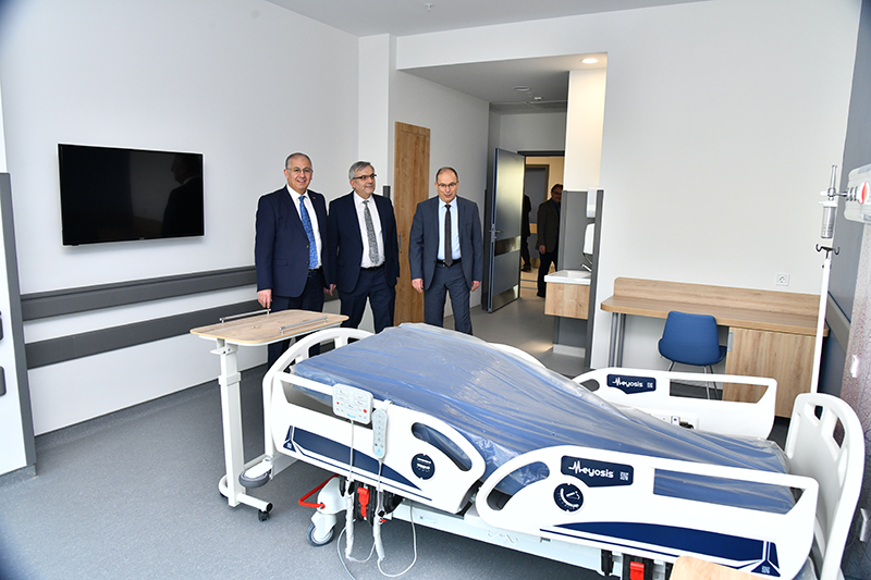 Kocaeli Şehir Hastanesi'nin bölümlerini gezen Rektörümüz Prof. Dr. Nuh Zafer Cantürk, hastanenin kentimiz ve bölgemize hayırlı olmasını diledi. 1.218 yatak kapasitesine, 235 polikliniğe ve 63 ameliyathaneye sahip olan Kocaeli Şehir Hastanesi'nin bölgemize önemli katkı sunacağına inandığını ifade eden Rektörümüz Prof. Dr. Nuh Zafer Cantürk, başta Cumhurbaşkanımız Sayın Recep Tayyip Erdoğan olmak üzere hastanenin yapımında emeği bulunanlara teşekkür etti.