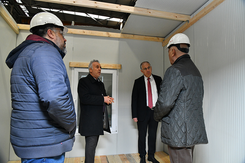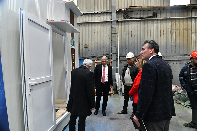 İlk yapılan prototipi görmek üzere Rektörümüz Prof. Dr. Nuh Zafer Cantürk ile Rektör yardımcıları Prof. Dr. Mehmet Yıldırım ve Prof. Dr. Elif Öğüt, Gemsan A.Ş. Yeniköy merkez atölyelerini ziyaret etti. Ziyaret sırasında yapılan yaşam modülü hakkında Kocaeli Üniversitesi Fen bilimleri Enstitü Müdürü Prof. Dr. Kadri. Süleyman Yiğit ve ekibi çalışmalar hakkında detaylı bilgi verdi. En kısa sürede 1 odalı yaşam modülünün Kocaeli Üniversitesi Umut tepe atölyelerinde seri üretime geçileceğini belirten Prof. Dr. Kadri. Süleyman Yiğit, ayrıca sponsorların destek durumuna göre istenirse içinde mutfak olan 2 odalı yaşam modüllerinin projesinin hazır olduğu ve üretilebileceği müjdesini verdi. Rektörümüz Prof. Dr. Nuh Zafer Cantürk, yaşadığımız bu zor günlerde böylesine anlamlı bir dayanışma örneği gösterdikleri için, Prof. Dr. Kadri. Süleyman Yiğit ve ekibine teşekkür etti.