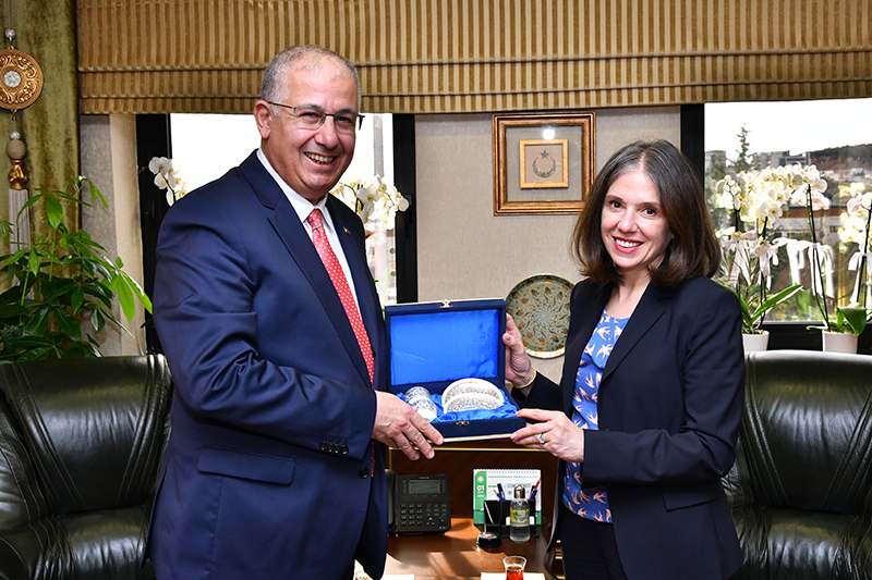 Karşılıklı fikir alışverişinde bulunulan ziyarette, ABD Başkonsolosluğu yetkilileri ile Kocaeli Üniversitesi Rektör Yardımcısı Prof. Dr. Mehmet Yıldırım, Genel Sekreteri Doç. Dr. Mustafa Eren, Uluslararası İlişkiler Birimi Koordinatörü Prof. Dr. Banu İnan Karagül, Rektör Danışmanı Prof. Dr. Levent Atalı yer aldı. Ziyaretten duyduğu memnuniyeti ifade eden Rektörümüz Prof. Dr. Nuh Zafer Cantürk, ABD İstanbul Başkonsolosu, Julie A. Eadeh’a nezaketleri dolayısıyla teşekkür etti.