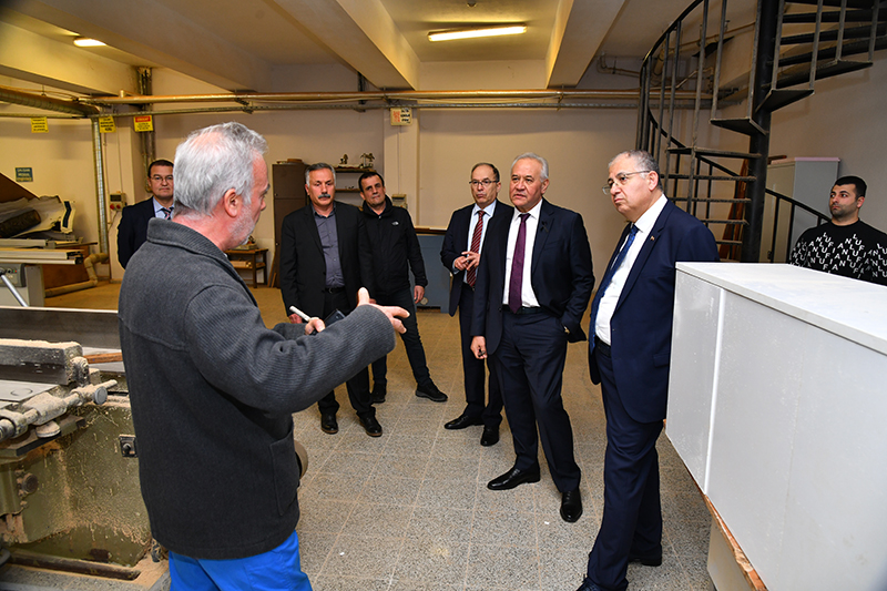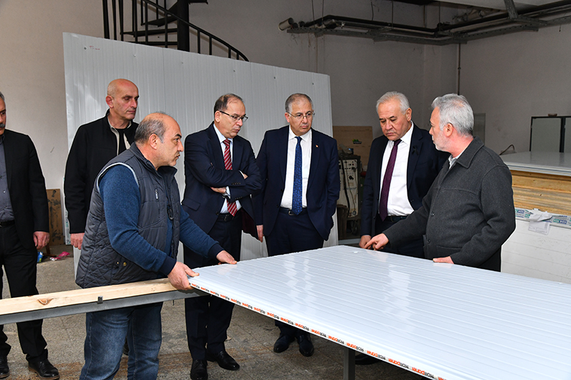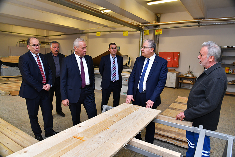 Karşılıklı fikir alışverişinde bulunulan ziyaret kapsamında, Kocaeli Üniversitesi Umuttepe Yerleşkesi atölyelerinde, deprem bölgesine yönelik tasarlanan modüler evlerin üretiminin yapıldığı alan da gezildi. Modül evlerin son durumu ile ilgili olarak Kocaeli Üniversitesi Fen bilimleri Enstitü Müdürü Prof. Dr. Kadri. Süleyman Yiğit ve ekibi detaylı bilgi verdi.