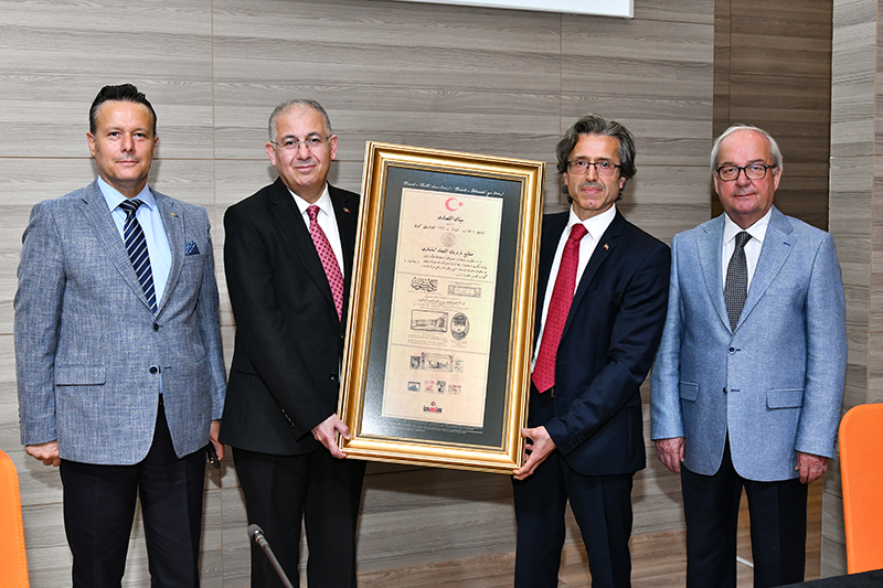 Başta Yönetim Kurulu Başkanı Prof. Dr. İbrahim Kılıçaslan olmak üzere İşbir Elektrik A.Ş. üyeleri Rektörümüz Prof. Dr. Nuh Zafer Cantürk’e hediye takdim ettiler.