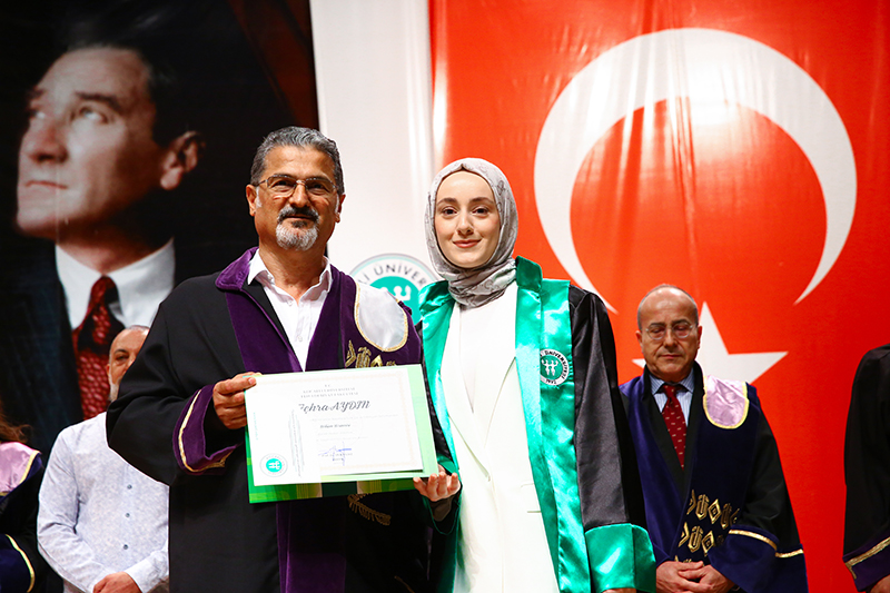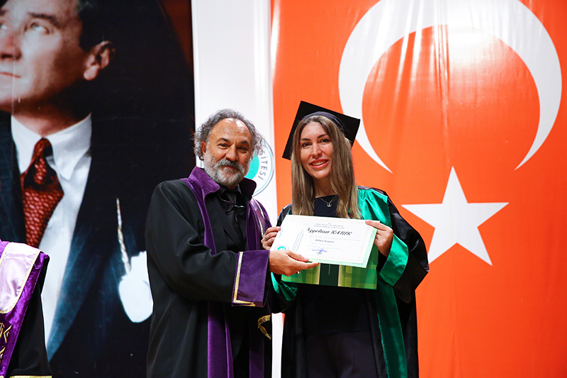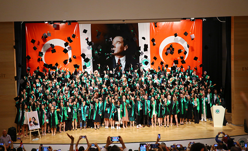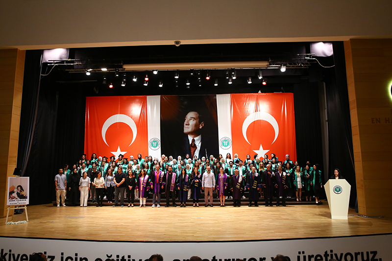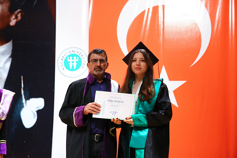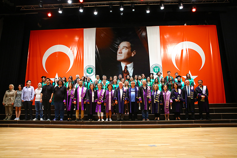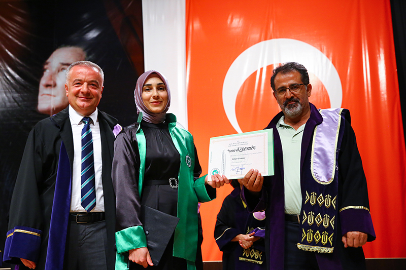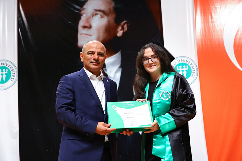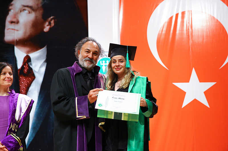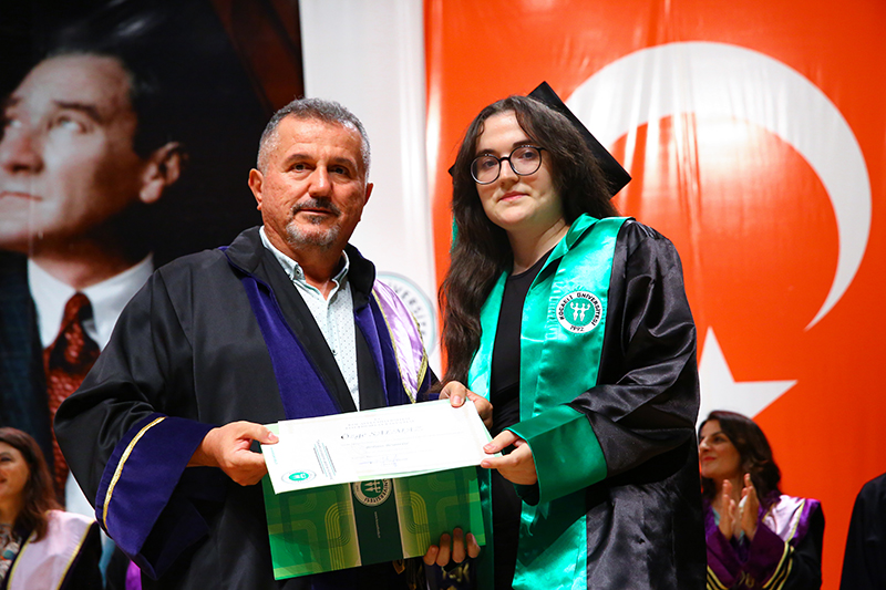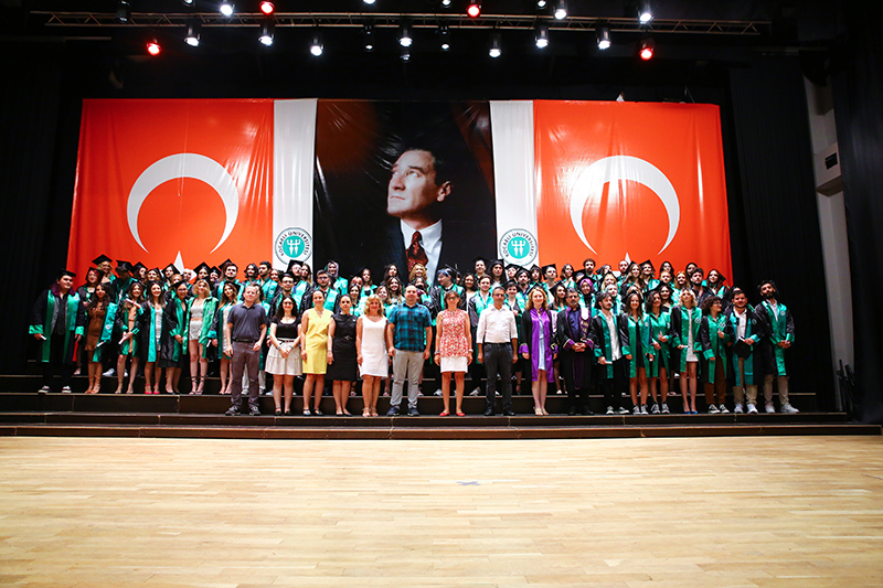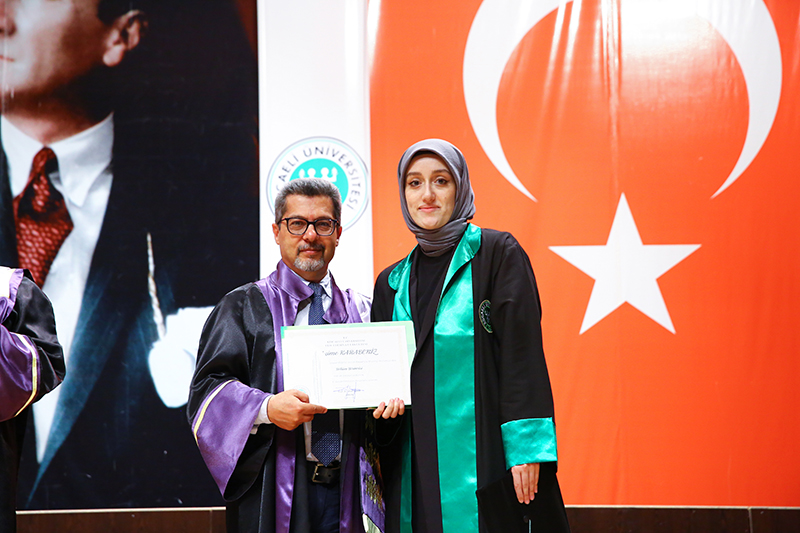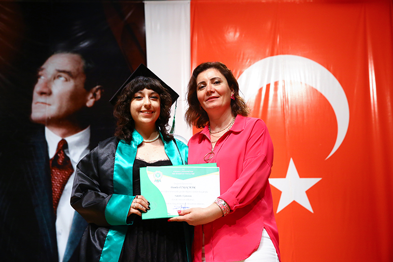 Bölümlerinde dereceye giren öğrencilere Plaket verilen törende, mezun öğrenciler anı belgelerini öğretim elemanlarından alırken tören, öğrencilerin birlikte kep atması ile sona erdi.