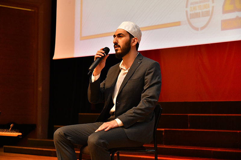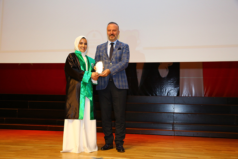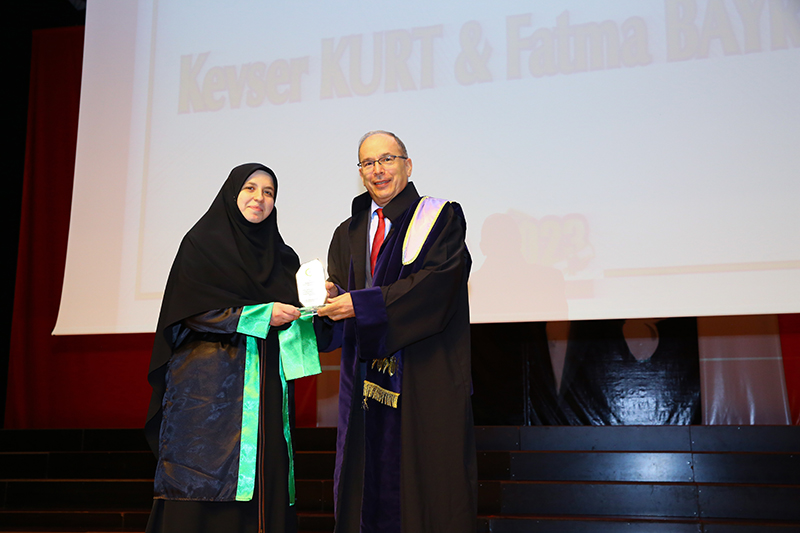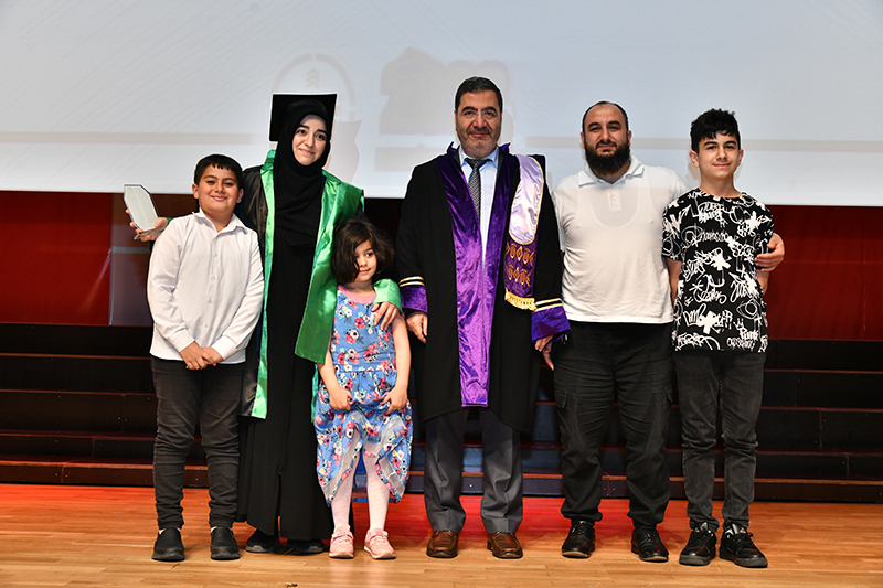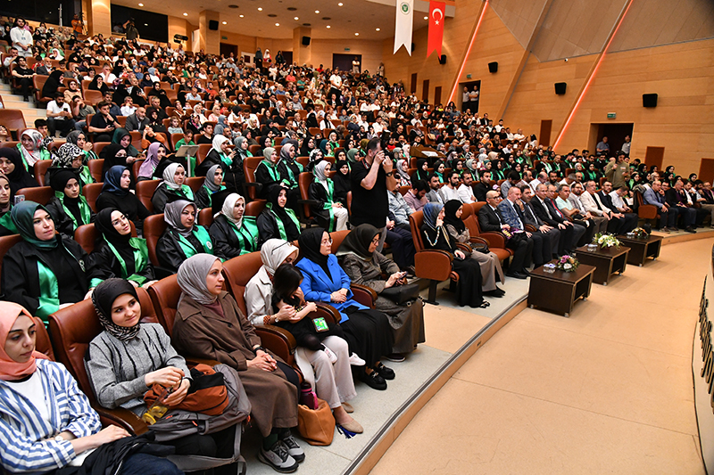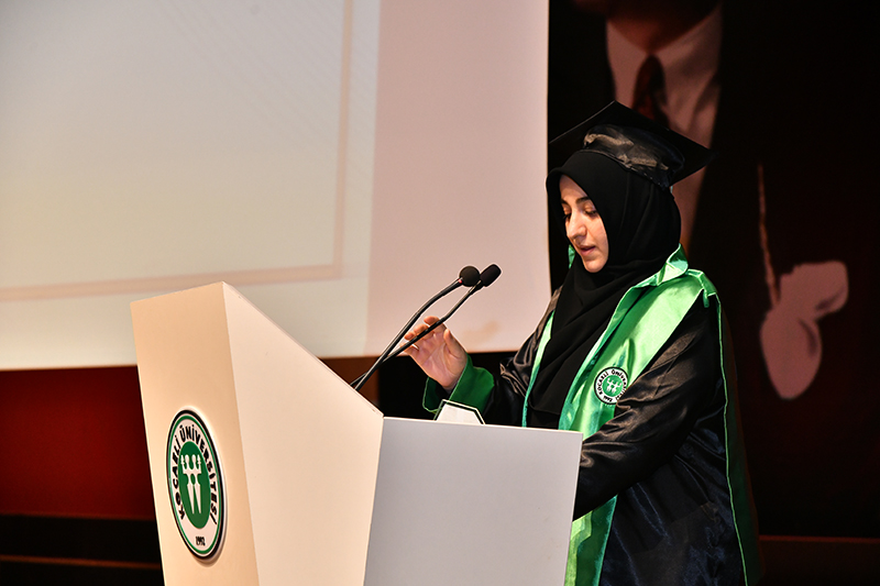Mezun öğrencileri ve ailelerini kutlayan Rektörümüz Prof. Dr. Nuh Zafer Cantürk ise, “İslami ilimler ve maneviyatın ışığıyla donanmış genç bilginler olarak bugün burada yer alıyorsunuz. Bu, sizin için uzun bir yolculuğun sonu, aynı zamanda yeni bir başlangıcın ilk adımıdır. Sizler, ilahi bilginin taşıyıcıları, toplumun aydınlanmasına katkıda bulunacak olan ilahiyatçılar olarak yetiştirildiniz ve bu değerli misyonunuzun bilinciyle hareket etmeniz gerekiyor. Sevgili mezunlar, sizlere güveniyoruz ve geleceğin umudu olarak görüyoruz. Sizler, bilginizi ve değerlerinizi toplumun iyiliği için kullanacak olan genç ilahiyatçılarsınız. Kur'an'ın rehberliğinde ilerleyin, insanlara umut ve ilham olun ve dünyaya barış ve sevgi getirme misyonunuzu unutmayın.” dedi.