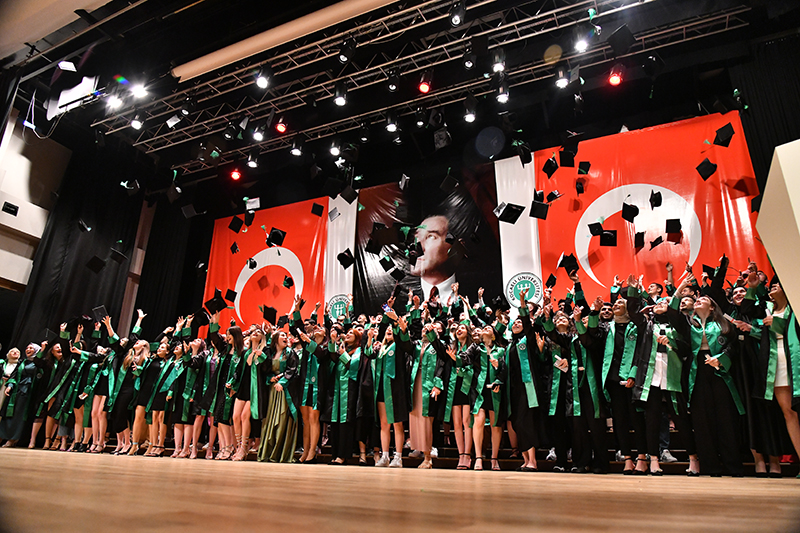 Bölümlerinde dereceye giren öğrencilere de plaket verilen törende, mezun öğrenciler anı belgelerini öğretim elemanlarından aldı. Tören, öğrencilerin birlikte kep atması ile sona erdi.