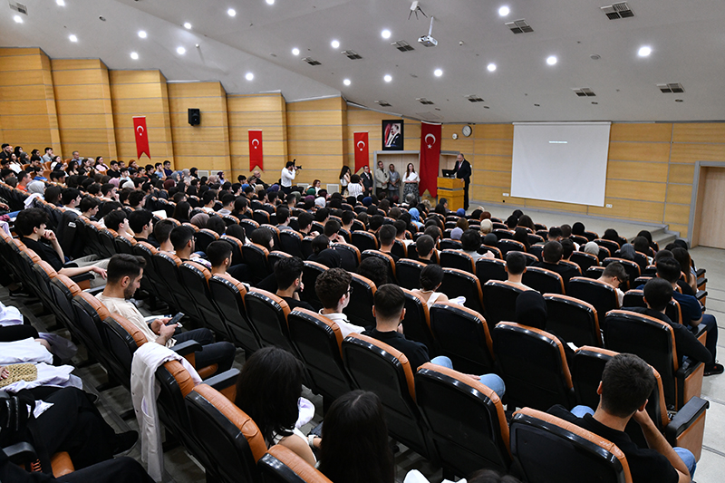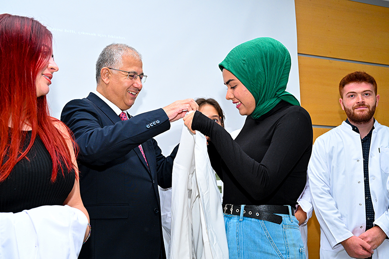Kocaeli Üniversitesi Tıp Fakültesi’ni ve hekimlik mesleğini tercih eden genç doktor adaylarını tebrik eden Rektörümüz Prof. Dr. Nuh Zafer Cantürk, “Hekimlik, sadece bir meslek değil, bir misyon ve sorumluluktur. Hekimler, insanların hayatlarına dokunurlar, acılarını hafifletirler ve umut aşılarlar. Tıp öğrencileri, bu büyük sorumluluğu taşıyan geleceğin kahramanlarıdır. Hekimlik, sabır gerektiren bir sanattır ve bu yolculukta karşılaşacağınız zorluklara hazırlıklı olmalısınız. Ancak unutmayın ki her zorluk, büyümenizin bir parçasıdır. Başarı, sadece başarılı anılardan değil, aynı zamanda hatalardan ve denemelerden de doğar. Bu yüzden korkusuzca öğrenmeye ve keşfetmeye devam edin. Unutmayınız ki, hekimlik, insanlığa hizmet etmek için seçilmiş bir meslektir. Hayatınız boyunca bu mesleği icra ederken, her zaman insanlığın iyi tarafını görmeyi ve insanlara umut ve iyilik getirmeye gayret edin. İnsanların hayatlarını değiştirmek için buradasınız ve bu büyük bir sorumluluktur. Bu yolda başarılarınızın sonsuz olmasını dilerim.” dedi.