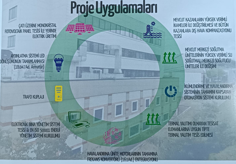 Kocaeli Üniversitesi Hastanesi Enerji Verimliliği Çalışmaları Projesi kapsamında yapılacak olan proje uygulamaları şunlardır;